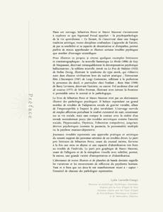 "Bipolarité" , "dysmorphophobie" , "paranoïa" ... tout le monde connaît ces termes. Mais que dissimulent-ils réellement ? Cet ouvrage aborde treize maladies psychiatriques à travers des extraits de journaux intimes de patients d'un asile imaginaire : l'Arion Asylum. L'un après l'autre, ces troubles mentaux se racontent, accompagnés d'une illustration, parabole animalière ; puis s'ensuit une transcription émotionnelle sous forme de bande dessinée, avant de terminer par une description succincte de la maladie. Un livre qui traite magnifiquement d'un sujet ancré dans la société depuis toujours et qui n'a jamais cessé de fasciner.