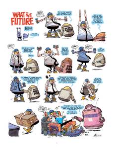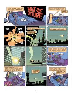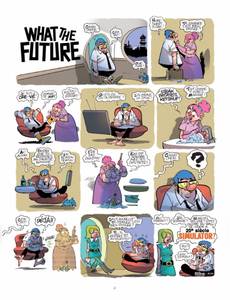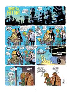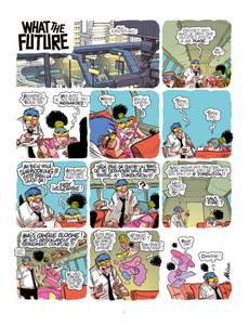 Si l'avenir n'est jamais écrit d'avance, il peut en revanche être dessiné. Droïdes domestiques trop humains, incivilités interdimensionnelles, clonages entrée de gamme, fins de vie provisoires... partagez les déboires de la famille FUTUR et découvrez en avant-première quel sera le monde de demain. LE FUTUR ! Si tu avances, lui il recule, comment veux-tu, comment veux-tu... l'atteindre ? Ce problème, également inhérent à d'autres sujets (arc en ciel, ombre, cerf-volant) a peut-être trouvé sa solution. Time machine ? Poulets éventrés ? Boule de cristal ? ahahah ! Mais non idiot ! WHAT THE FUTURE ! L'album de BD relatant des faits réels ne s'étant pas encore déroulé. L'auteur Mo/cdm a mis au point une technique empirique révolutionnaire basée sur l'extrapolation néo-technologique du présent à travers l'étude approfondie de la théorie des probabilités et de l'interprétation de diverses statistiques afin de capter les évènements clefs de notre monde à venir... Toutefois, étant lui-même dans l'incapacité de relire et de comprendre le sens de cette dernière phrase, il s'est engagé vite fait sur une tout autre voie que nous qualifierons d'« invention totale ». Au cours de ces 72 pages, vous découvrirez que si l'avenir n'est jamais écrit d'avance, il peut en revanche être dessiné. Nous attirons l'attention des lecteurs désireux d'appréhender leur destin au jour le jour sur le fait que de nombreux « spoilers » concernant le futur sont présents dans cet album... Mais si vous ne craignez pas de vous tourner vers des lendemains qui chantent (plus ou moins juste) et de laisser le passé derrière vous, n'hésitez pas, sautez dans la locomotive du train en marche de l'innovation: Lisez WHAT THE FUTURE ! Départ immédiat. Prochain arrêt : après-demain, si vous le voulez bien !