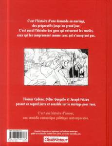 Romain et Augustin vivent ensemble à Paris depuis deux ans. Augustin veut épouser Romain qui dit oui puis hésite. À l'heure où certains rejettent avec violence l'idée que deux hommes puissent s'unir, il craint de porter bien plus que son propre mariage. C'est leur histoire, avec les galères universelles des préparatifs ! C'est aussi l'histoire de leurs proches, ceux qui les comprennent comme ceux qui n'acceptent pas.