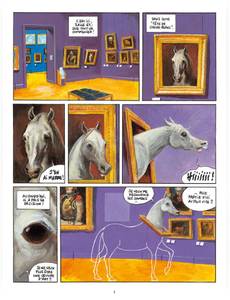Premier album jeunesse coédité avec les éditions du Louvre, cette bande dessinée hippique et poétique dit en quoi chaque oeuvre est un témoignage unique et irremplaçable d'une époque offert aux regards d'aujourd'hui. Mardi, jour de fermeture du musée du Louvre. Dans la tête d'un cheval blanc, l'idée jaillit qu'il ne veut plus être une oeuvre d'art. C'est le moment de s'enfuir et de rallier à sa cause d'éventuels compagnons de route. Certains parlent d'une porte gardée par une créature étrange surnommée "le Cerbère". Mais que garde-t-il vraiment ? La clé de la liberté ou plutôt celle du mystère de leur existence ?