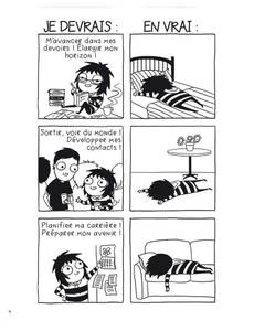 A travers son personnage caustique, mignon et drôle, Sarah croque avec beaucoup de mordant les petits et grands tracas de sa vie. Ses flemmes, ses envies, son travail, sa touchante misanthropie ou encore ses truculentes pensées existentielles. Autrement dit, les difficultés de beaucoup de jeunes adultes d'aujourd'hui ! Une apparente légèreté pour des réflexions toujours en plein dans le mille.