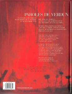 Février 1916. L'enfer de Verdun aura duré 10 mois. Bravant la censure débordée par des millions de lettres, les soldats livrent avec beaucoup de lucidité l'atrocité que fût la bataille la plus symbolique de la première guerre mondiale : Verdun. Paroles de Verdun illustre avec humilité et émotion le quotidien des tranchées et les sentiments de ces hommes au destin souvent tragique. Confidences, dernières volontés, déclarations d'amour ou d'effroi... Une histoire à mille voix, illustrée par de grands noms de la BD : Bézian, Chabouté, Lauffray, Martin, Parel, Paty, Rabaté, Varanda...