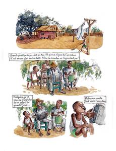 Quand le petit Jean est né, tous l’ont cru mort. Mais, alors qu’on emmenait son corps, il s’est mis à miauler… Si bien que l’enfant a hérité du surnom de Piso, le « chat » en malgache. Aujourd’hui, Jean Piso est l’accordéoniste attitré du groupe Ny Malagasy Orkestra, qui porte haut les couleurs de l’île de Madagascar à travers le monde. Geneviève Marot a fait sa connaissance alors qu’elle accompagnait le groupe sur la route, pour réaliser les visuels de leurs prochains CD et affiches. Jean Piso lui a conté son enfance : sa découverte de l’accordéon, les jeux, les incidents entre enfants et plus généralement la vie dans un petit village du Sud de Madagascar, Betioky. Et Geneviève a mis ces souvenirs en images... Une plongée dépaysante dans la vie quotidienne d’un petit village malgache.