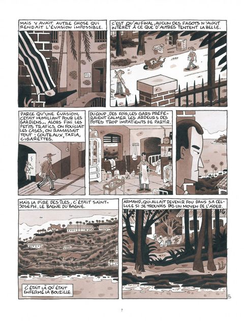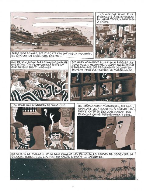 Ancien instituteur, Paco les Mains rouges, surnommé ainsi parce qu'il a commis un crime de sang, a été envoyé au bagne en Guyane. Sur place, il doit affronter la réalité d'un monde carcéral où règne la loi du plus fort, où il est question de survie à chaque instant, et tout cela sans avoir le moindre espoir de sortir libre... La conclusion de ce magnifique roman graphique est à la hauteur de l'attente !