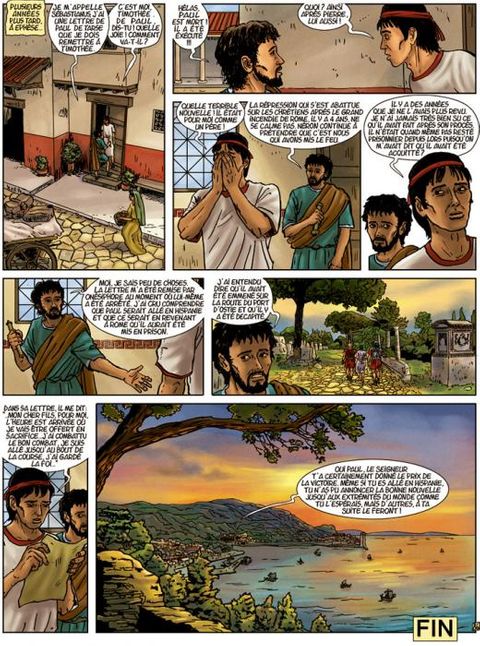 Saint Paul… Un des plus grands saints de l’Église catholique, un des deux « piliers de l’Église » avec saint Pierre et l’auteur des Épitres, lues tous les dimanches. Connaissant parfaitement les écritures, Saül veut défendre la doctrine juive contre les enseignements de ces illuminés qui se prétendent prophètes et messies, le pire étant bien sûr ce Jésus, crucifié il y a quelques années. Intransigeant, Saül participe aux persécutions des premiers chrétiens, complice actif des mises à mort dont celle d’Étienne. C’est sur le chemin de Damas, où il devait purifier la ville des sectes chrétiennes que Saül est terrassé par le Christ. Toute son énergie et sa force de conviction vont être maintenant au service de l’annonce de l’Évangile. Cette BD entraine le lecteur à la suite de l’apôtre des Gentils, sur le chemin de Damas de la conversion aux routes de l’Évangélisation.