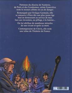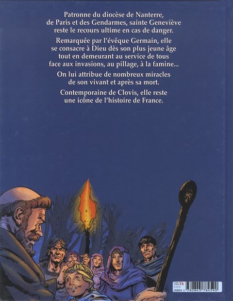 Patronne du diocèse de Nanterre, de Paris et des gendarmes, sainte Geneviève reste l'ultime recours en cas de danger. Remarquée par l'évêque Germain, elle se consacre à Dieu dès son plus jeune âge tout en demeurant au service de tous les habitants de la cité face aux invasions, au pillage, à la famine, aux maladies... On lui attribue de nombreux miracles aussi bien de son vivant qu'après sa mort. Contemporaine de Clovis, elle reste une icône de l'Histoire de France.