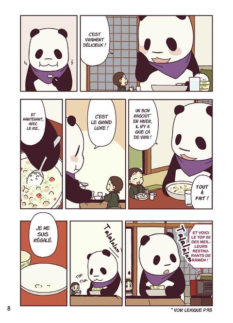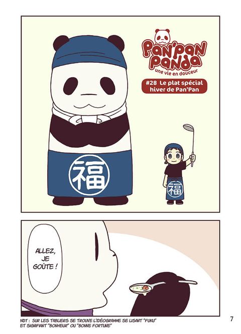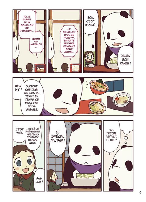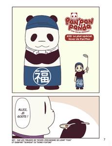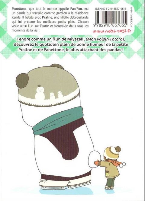 Panettone est un panda qui vit avec Praline, une petite fille adorant la cuisine. Chaque chapitre présente un moment de leur vie quotidienne, qu'il s'agisse de choisir le foulard de Panettone, de préparer les fêtes de Noël ou d'accueillir de nouveaux voisins. D'ailleurs, au fil du temps, Panettone et Praline vont rencontrer de nouveaux personnages, chacun avec son petit caractère : leurs petites voisines Rose, qui tombe en admiration devant le panda, et Paprika la tête de mule, mais aussi Romarin le frère de Rose, Flore la jolie grande soeur de Paprika etc. Tout ce petit monde se croise dans la résidence Kanda et vit ensemble les petits bonheurs du quotidien ! Plein de fraîcheur, Pan'Pan Panda est un manga agréable aux couleurs douces et à l'ambiance apaisante. Impossible d'y résister !