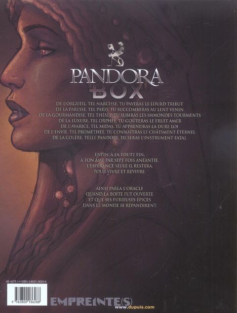 L'histoire Paris Troy est une star. Un héros des pistes d'athlétisme. À son actif, neuf années sans réel concurrent sur le 100 mètres. Et une furieuse envie d'en ajouter une dixième. Il n'a jamais triché. Mais à cause d'une vilaine blessure, il a du mal à revenir au premier plan. Ses performances ne sont plus ce qu'elles étaient. Pas facile de retrouver son plus haut niveau. Pas évident de continuer à puiser en soi-même les ressources nécessaires à de nouveaux exploits. À la veille des Jeux olympiques d'Istanbul, un jeune sprinter se rapproche dangereusement de son record. Son leadership est directement menacé. Comment réagir ? Son frère, pourtant tombé en disgrâce pour s'être dopé, lui suggère quelques produits interdits. Il refuse. Mais la tentation est là, tenace... Et si le dopage permettait aussi de suppléer au goût de l'effort quand celui-ci s'amenuise et quand la paresse guette oe Le mythe La guerre de Troie fut déclenchée par l'enlèvement de Hélène, la reine de Sparte, par Paris, un prince troyen. Après de longues années de siège, les Grecs se retirèrent en abandonnant devant les portes de Troie un immense cheval de bois. Pensant à un cadeau des dieux, les Troyens le firent entrer en leur cité. La nuit venue, les soldats grecs, cachés à l'intérieur du cheval, ouvrirent les portes de la ville aux leurs. C'est ainsi que Troie tomba après dix ans de siège... Le thème La paresse, c'est le péché capital évoqué dans cet album. Il arrive qu'elle mène droit à la tricherie. Et celle-ci peut laisser des traces douloureuses sur une victoire. Le dopage proposé sera-t-il le cheval de Troie de Paris ? Pandora box : huit albums, un scénariste, sept dessinateurs. Les sept premiers albums de la série portent le titre d'un péché capital et l'associent à une technologie moderne et à un mythe grec. Les sept péchés capitaux sont les équivalents judéo-chrétiens des maux de la boîte de Pandore. L'espérance, qui selon la légende en sortit en dernier lieu, donne son titre au huitième et dernier album. �