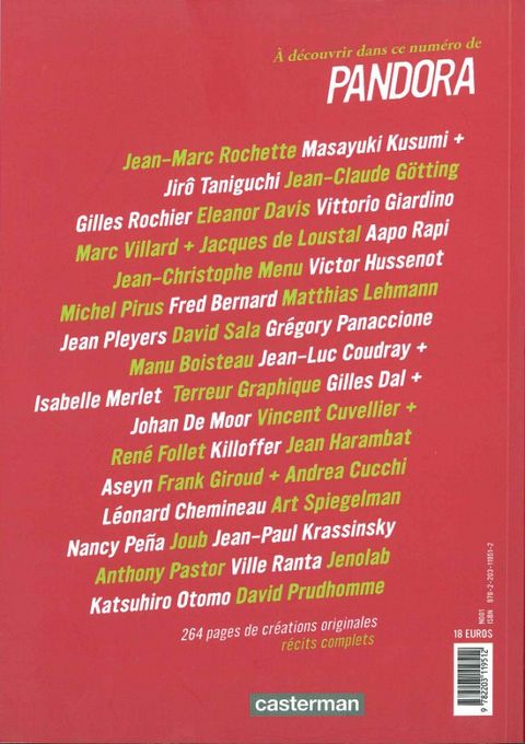 La revue Pandora présente des récits autonomes, des "short stories", et des nouvelles sous forme de bandes dessinées mais aussi de quelques textes littéraires illustrés. Ouvrir Pandora est une expérience de lecture incomparable : la preuve par l’exemple que la bande dessinée conserve un immense potentiel de séduction et que l’imagination peut apporter une autre vision du monde. Tous les sujets peuvent être abordés, tous les genres revisités, tous les styles inventés sans aucune thématique imposée. La créativité et le plaisir sont prioritaires. Pandora s’adresse à tous les lecteurs, qu’ils soient des lecteurs de romans et de bande dessinée ou des spectateurs de films et de séries télé. La diversité des talents publiés dans Pandora – diversité géographique, narrative et artistique – donne à la revue la dimension d’un panorama extrêmement complet du meilleur de la créativité de la bande dessinée en 2016 !