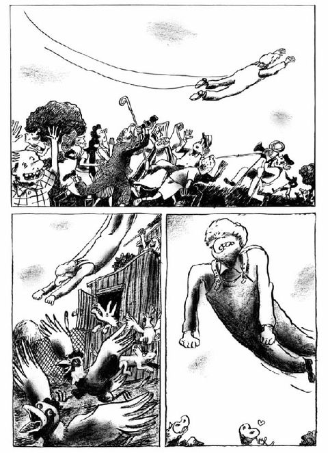 Quelque part dans le monde rural, après la crise de la vache folle, un petit village figé dans le temps somnole paisiblement au rythme des tournées du facteur et du Café de la Place. Et pourtant un événement extraordinaire va venir contrarier le «ron-ron» léthargique des quelques habitants de Saint-Pancréas... Un beau matin, Michel, garçon de ferme de son état, va être l'objet du plus étrange des phénomènes : comme touché par la grâce, il entre ni plus ni moins en lévitation ! Il n'en faut pas plus pour tirer de sa torpeur la bourgade endormie et déchaîner les passions de l'establishment politique, clérical et médiatique... Pendant ce temps là, dans un monde lointain où les oiseaux ne volent plus et où les hommes sont des petites créatures de compagnie qui se balancent nonchalamment sur les trapèzes miniatures de leur cages à oiseaux, Kiki, la charmante «oisillonne», décide de partir en quête de cet étrange pays où les oiseaux demeurent encore ces gracieux volatiles au vol majestueux...