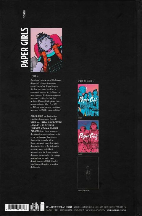 Brian K. VAUGHAN et Cliff CHIANG sont déjà de retour ! Et avec eux, Erin, Mac et Tiffany, propulsées de l'an 1988 vers un futur lointain et terrifiant... l'an 2016.