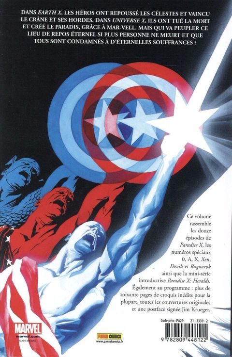 Dernier volet de la trilogie débutée avec Earth X et Universe X ! Mar-Vell est parvenu à vaincre la Mort et désormais plus personne ne peut mourir. X-51, quant à lui, forme une équipe pour secourir les habitants d'autres dimensions et les prévenir de l'existence d'embryons célestes. Pendant ce temps, Reed Richards, Bruce Banner et le Fauve tentent de trouver une solution à la crise qui affecte leur monde.