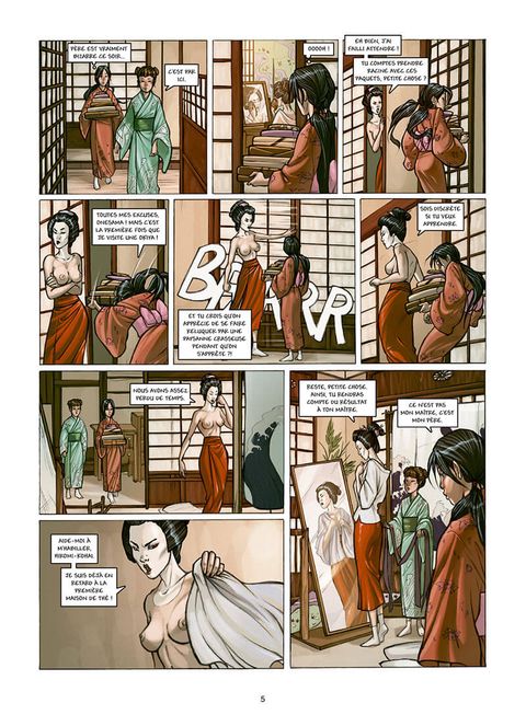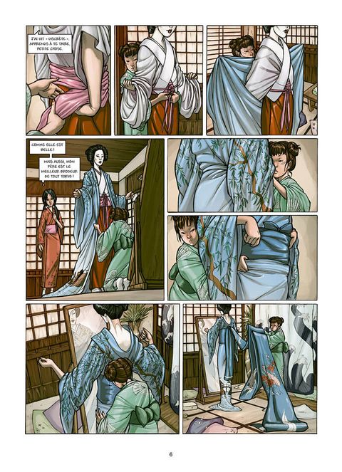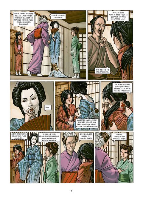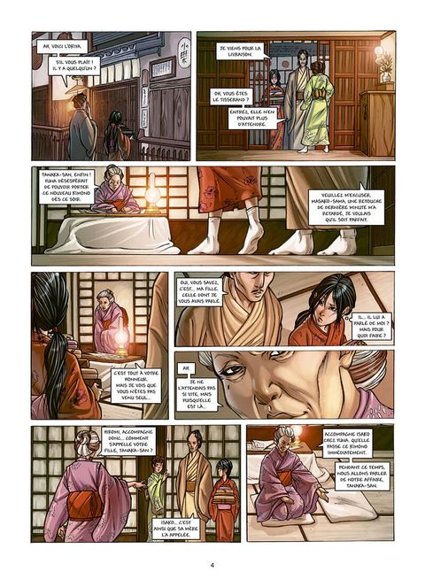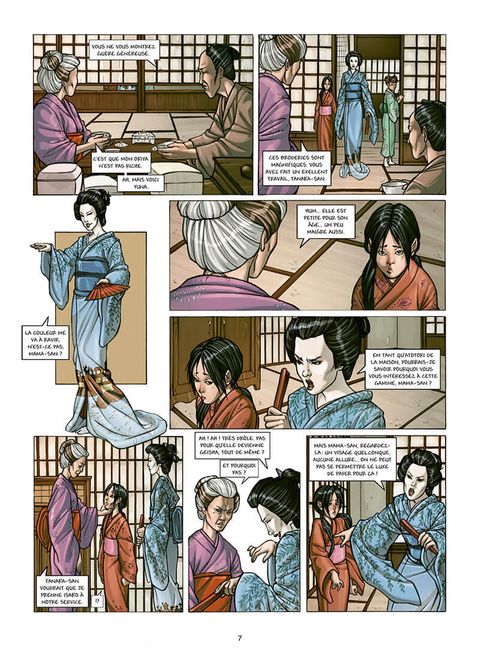 Le jour où Isako livre un nouveau kimono à l'okiya, elle n'imagine pas que son père va la vendre, avec pour perspective de faire d'elle une geisha. La jeune fille est précipitée dans un univers aussi hostile que fascinant, sommée de démêler les fils d'un destin qu'on a tissé pour elle. D'intrigues en chausse-trappes, l'étau se resserre dans les froissements d'étoffe, et alors que l'heure de son examen approche les comptes doivent être soldés.