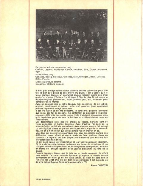 | Auteurs | Pierre WiningerEnki BilalAlexandre CoutelisPierre ChristinJuan GiménezJean-Claude ClaeysJacques TardiAnnie GoetzingerJean-Claude MézièresJean VernMichel Blanc-DumontMax CabanesFrançois Boucq |