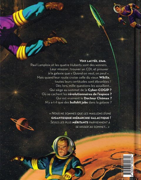 2346 - Le taux de chômage galactique atteint les 99 %. Pour réduire les dépenses sociales, le Dr. Chômax cryogénise les demandeurs d'emploi. Ceux qui en réchappent n'ont plus qu'une option : l'Hubérisation. Tout en continuant d'écumer la galaxie à la recherche d'un CDI et d'enchaîner les petits boulots précaires, nos héros sont assaillis de questions... Qui se cache au sommet de la pyramide hiérarchique de la Hubert Corporation ? Qui contrôle les robots qui volent les emplois aux humains ? Qui sont les mystérieux syndicalistes de l'espace ? Y a-t'il une retraite prévue pour les Huberts ? Twists, doubles twists, contre-double-twists... Le chemin qui mène à la vérité est sinueux, mais la révélation finale est proche !