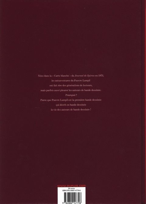 La première chronique satirique sur le quotidien d'un dessinateur de BD. .. La première chronique satirique d'auteurs de BD sur leur quotidien. .. Une série qui a marqué les lecteurs du Journal de Spirou dans les années 1970 et 1980. .. Une série de Lambil et Cauvin, le duo des Tuniques Bleues. .. Une intégrale qui regroupe absolument tout ce qui a été publié sous le titre Pauvre Lampil, dont les 7 albums. .. Marque-page en tissu.
