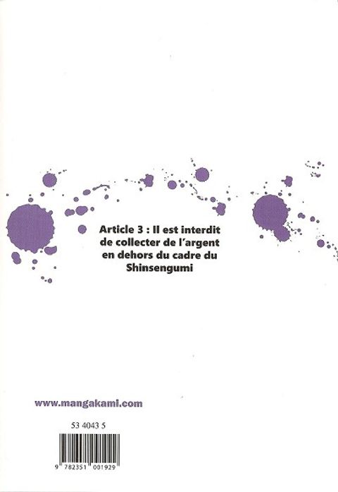 Le Japon féodal du Bakufu est sur le point de s'effondrer sous les assauts des clans progressistes. La sécurité dans la capitale impériale de Kyoto est assurée par un groupe de samouraïs d'élite : le shinsengumi. Tetsunosuke Ichimura est une vraie tête brûlée. À peine âgé de quinze ans, il désire rejoindre les rangs du shinsengumi pour devenir plus fort et venger la mort de son père. Et aussi pour un peu copier son frère qui y a été engagé comme comptable. Après un affrontement violent avec le plus jeune capitaine, il y réussit. Mais il déchantera bien vite en réalisant que le shinsengumi ne fait pas que le bien autour de lui. Certaines de ses actions lui rappellent trop douloureusement l'exécution de ses parents par des rônins (samouraïs sans maître, considérés comme des hors la loi)...