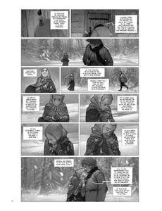 Le dessin est vraiment beau. Noir et blanc, il faut imer, mais vraiment, c'est fort bien fait! L'histoire est un peu compliquée à comprendre : c'est un conte nordique, avec des textes "à l'ancienne". Mais j'attends quand même la fin, envie de savoir comment cela finira...