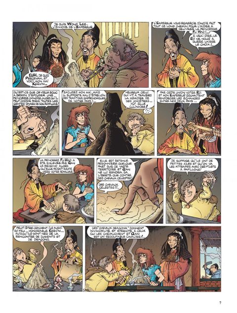 Fu Hao, une princesse chinoise, est enlevée par Qan le brigand, alors qu'elle faisait route vers le royaume de Percevan afin d'épouser le roi. Percevan et Kervin sont envoyés dans les mortelles Terres sans retour pour trouver les chevaux célestes, créatures mythiques issues du croisement d'une jument et d'un dragon, et rançon réclamée par Qan pour délivrer la princesse. Pour ce treizième tome, Luguy et Léturgie confrontent leur héros aux magies et mystères de la Chine médiévale, et nous offrent un récit cruel et envoûtant !