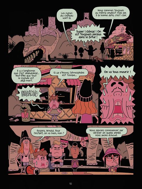 Les jeunes Piero, Sara, Mei, Arnold et Driss ont réussi à effectuer un saut temporel leur permettant de quitter les Templiers réfugiés dans le futur. Mais plutôt que d'arriver chez eux, ils atterrissent en 2112, dans un parc d'attraction en ruines avec ses monstres de carton-pâte, qu'ils prennent d'abord pour des créatures réelles ! Découvrant avec horreur que la Terre a connu une terrible apocalypse, que n'ont pu lui éviter les hommes, trop occupés à se réfugier dans des mondes virtuels connectés, les enfants vont se trouver pris entre deux groupes d'enfants rescapés : ceux restés défenseurs de l'ultra-technologie et les partisans d'un nouveau monde restant à réinventer... Une situation qui va plus que jamais souder Piero, le caïd de la classe, à ses anciens souffre-douleur, mais qui va rudement compliquer le voyage de retour jusqu'à leur époque... Après avoir traité du harcèlement, de l'amitié ou encore de la protection de la nature à travers des aventures pop et pétillantes, Damián et Alex Fuentes réalisent le tour de force de critiquer notre société d'écrans sans être moralisateurs.