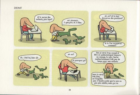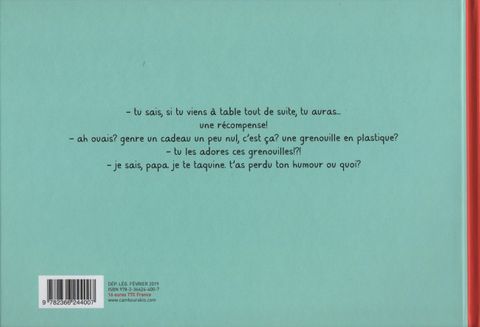 Première bande-dessinée de l'auteur jeunesse reconnu Raphaël Fejtö. S'occuper de son fils n'est pas de tout repos, mais c'est une source de perpétuelles découvertes et réjouissances. Surtout à l'âge des questions, où la taquinerie le dispute sans cesse à la provocation, sans jamais oublier la recherche d'affection. Dans une série de tranches de vie qu'il croque avec humour, Raphaël Fejtö rend compte de ce quotidien où alterne recherche d'autorité et épuisement, tentative d'affirmation du fils et quête de reconnaissance. Le tout empreint d'un humour grinçant provoqué par la lucidité hors-norme du fils qui transparait dans sa répartie, et d'une indéniable tendresse.