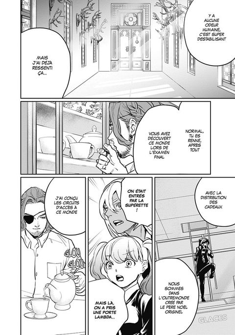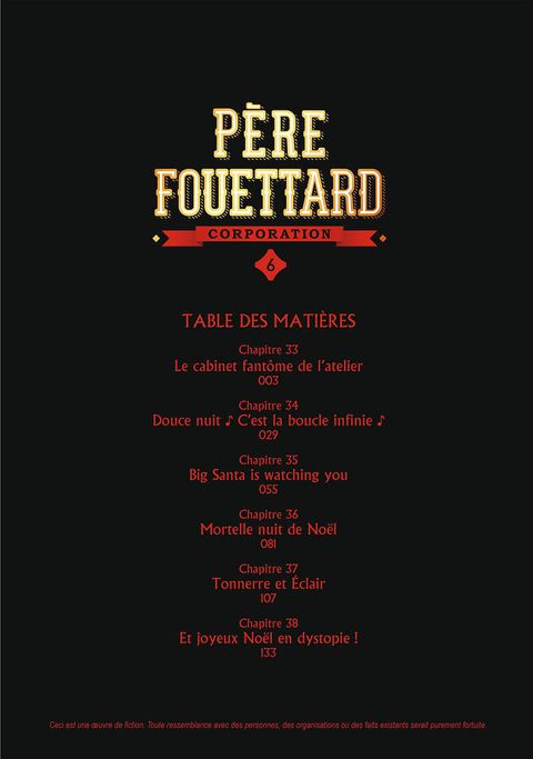 Découvrez le côté obscur du Père Noël !Le mystérieux Drosselmeyer, sorti des murs de l'Atelier tel un diable de sa boîte, emporte Miharu sous les yeux horrifiés (et invisibles) de Knecht. Notre pauvre héros, éberlué, se retrouve alors projeté dans la Douce Nuit, une boucle temporelle futuriste se déroulant au réveillon suivant. Pendant que Miharu est aux prises avec ce casse-tête chronographique, Knecht, au pied du mur, dévoile la vérité sur l'enrôlement forcé du jeune homme à l'Atelier. Dans ce 6e tome de Père Fouettard Corporation, le conte de Noël déjanté prend un tour lugubre, et les fils de la trame se resserrent inéluctablement autour du cou des protagonistes...