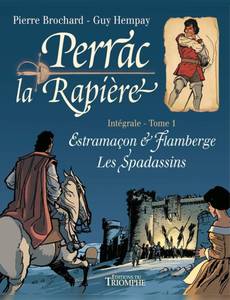 Un gentilhomme gascon téméraire et désargenté qui se rêve mousquetaire comme d'Artagnan et se révèle poète comme Cyrano, voilà Perrac-la-Rapière ! Ce « cousin » du chevalier de Saint-Clair part à l'aventure dans le contexte historique du début du XVIIe s. marqué par les luttes entre la noblesse française et le pouvoir royal du duo Louis XIII-Richelieu. Fine lame et tête brûlée, le jeune baron Perrac est un cavalier voyageur.<br />Dans les deux épisodes de cet album, il nous emmène, avec son fidèle valet Pactole, sur les routes de France. Pour déjouer un complot contre le roi, il est tout d'abord engagé comme espion. Mais ses employeurs, de grands nobles du royaume, sont ceux-là même qui ont fomentés la conjuration. Derrière sa désinvolture et ses vers de mirliton, Perrac a senti le piège et fera tout pour prévenir le souverain du danger.<br /><br />Grâce à son talent de rimeur-bretteur, Perrac devient ensuite le nouvel auteur à succès d'une troupe ambulante. Un voyage en compagnie de comédiens qui n'est pas sans évoquer les tournées de Molière avec l'Illustre Théâtre. Mais les escarmouches se multiplient sur le chemin... C'est la résurrection aux Editions du Triomphe d'un inédit de Pierre Brochard ! Cette magnifique édition de Perrac-la-Rapière sort de l'oubli un héros de cape et d'épée dont les exploits étaient parus dans Formule 1 dans les années 70.<br /><br />On retrouve dans ce recueil tout l'humour de Pélaprat. Son scénario est porté par le dessin vif et réaliste de Brochard dont le talent se déploie dans les chevauchées et scènes de combats. Les lecteurs, à partir de 8 ans, se réjouiront de découvrir ou redécouvrir ce personnage chevaleresque et si original ! Des aventures à suivre puisque 12 au total ont été dessinées. <br />