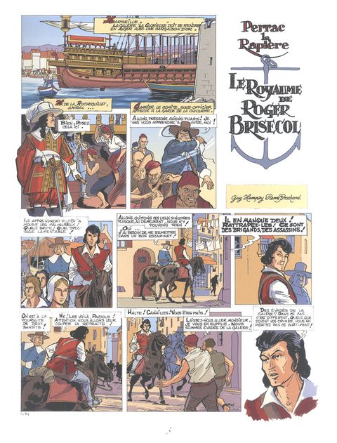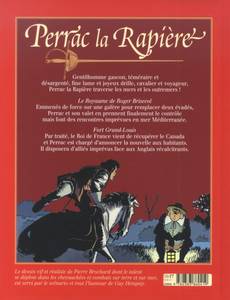 Gentilhomme gascon, téméraire et désargenté, fine lame et joyeux drille, cavalier et voyageur, Perrac la Rapière traverse les mers et les outremers !Deux nouvelles aventures : Le Royaume de Roger Brisecol et Fort Grand-Louis.Le dessin vif et réaliste de Pierre Brochard, dont le talent se déploie dans les chevauchées et les combats sur terre et sur mer, est servi par le scénario et tout l’humour de Guy Hempay.
