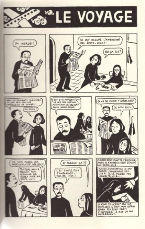 1982 : il pleut des bombes irakiennes à Téhéran et Marjane a douze ans. A peu près l'âge des gamins, ceux de la femme de ménage s'entend, qui seront envoyés sur les champs de bataille munis d'une clé en plastique censée leur ouvrir les portes du paradis. Après avoir fait connaissance avec la révolution et ses corollaires terrifiants, Marjane découvre la guerre à sa fenêtre et apprend à faire la différence entre un Mig et un F14. C'est la guerre. Alors, comme dans toutes les guerres, on tâche de ne pas se laisser abattre: on s'aime, on boit, on se déchire, on s'entraide, on se méfie des voisins et on attend la fin. On grandit aussi un peu plus vite car on vit plus intensément, et la vie de suivre ou non son cours, Inch'Allah ou au petit bonheur la chance. A douze ans, on voit grand, et Marjane n'est pas du genre à s'en laisser compter. Ses parents non plus, qui prendront le risque de lui rapporter de Turquie des posters d'Iron Maiden et de Kim Wilde ou d'organiser des fêtes interdites. Au fil des chapitres de sa vie, on assiste à la transformation d'une petite fille ordinaire en femme de chair et d'assaut, qui forgera son caractère dans l'acier trempé de l'insoumission et de la rage d'exister.