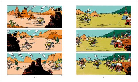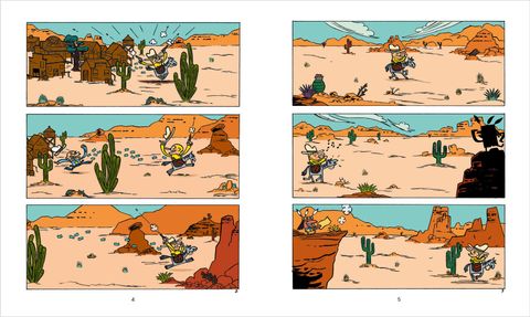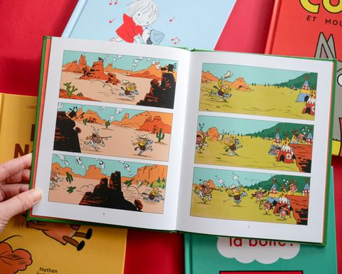 Lire tout seul avant de savoir lire, c'est possible avec Mini Bulles.Des premières BD à découvrir dès 3 ans : une BD sans texte conçue pour les petits. Les petits entrent naturellement dans les livres par les images : sans le soutien du texte, les images portent toutes les étapes du récit sans ellipse narrative. Sans texte, chacun est libre de se raconter l'histoire comme il le souhaite : à partir des images, l'enfant passe à l'oral et fait des phrases pour vous raconter l'histoire ou lire tout seul. Dans cette histoire : Tous aux abris ! Voici l'intrépide Peter Panpan qui arrive pour semer la pagaille ! Cowboys, Indiens, bisons, cactus, rien ne résiste au plus casse-cou des héros ! Une bd western menée tambour battant qui mêle avec malice réalité et imaginaire, à découvrir dès 3 ans. Dans chaque BD, un volet dépliant "Suivez-le guide" pour accompagner les parents et vous donner les clefs d'entrées dans une BD sans texte.Une BD d'Édouard Manceau, auteur et illustrateur français de livres pour enfants.