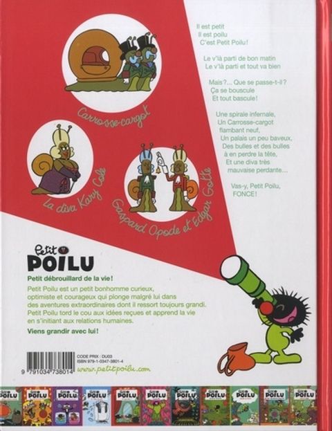 Torsades et spirales emportent Petit Poilu dans le monde de la diva Kary Cole, championne des plus belles bulles du royaume des escargots ! Petit Poilu se prend au défi de supplanter la diva, mais la belle, tenant à son titre, est prête à tout pour garder son statut de championne. Petit Poilu parviendra-t-il à se hisser à la première place et à devenir le créateur des plus grandes, des plus belles et des plus scintillantes bulles du royaume ? Ce Duel de bulles, tout en rondeur et en légèreté, sera le support idéal pour échanger avec vos enfants sur la déception de perdre, sur le plaisir de gagner et sur l'esprit de compétition. Toujours aussi mignon et drôle, Petit Poilu aborde une fois de plus un sujet important pour les jeunes (et les moins jeunes). Une discussion à avoir en famille qui apportera, n'en doutons pas, aux petits autant qu'aux grands !