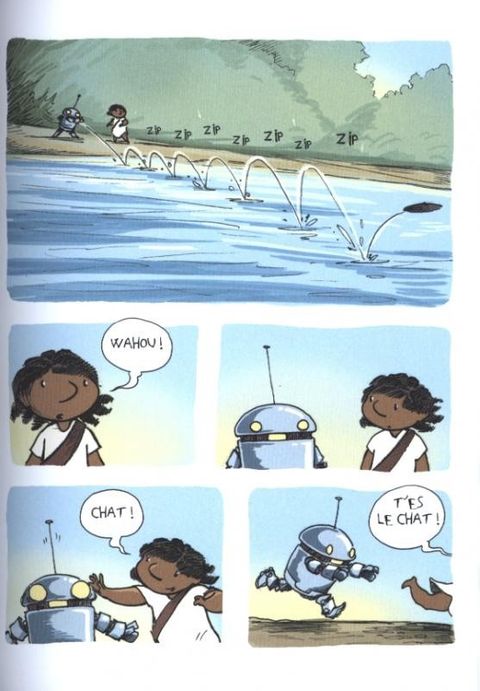 D'un côté, il y a une petite fille. Elle est bricoleuse et débrouillarde. De l'autre un petit robot tombé d'un camion... La rencontre a lieu et l'aventure commence. Il faut tout d'abord réparer ce petit robot qui visiblement est cassé. Mais heureusement la petite fille a de l'idée. Et les voilà bien vite à marcher tous les deux. Elle lui montre son univers. Mais à l'usine, les machines implacables donnent l'alerte. Il manque un robot... Bientôt, les deux amis jouent ensemble. Après une course dans la forêt, ils se retrouvent tous les deux face au grillage de l'usine et découvrent un énorme trou. Un énorme robot a pour mission de retrouver l'élément manquant. La course-poursuite entre les deux robots commencent. Et le duel est inégal. Petit robot se retrouve vite à l'usine, de nouveau prisonnier. C'est sans compter sur l'imagination bricoleuse de la petite qui va bien vite trouver la solution et libérer le petit Robot. Ils vont retrouver la liberté... et de nombreux amis, car la demoiselle n'a pas chômé. Elle a réparé et "redonné vie" à de nombreuses machines. La balade et la complicité entre la petite et le robot peut reprendre son cours...