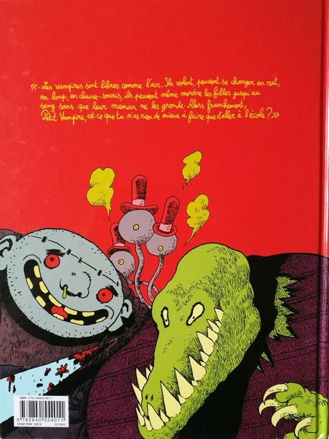 " les vampires sont libres comme l'air. Ils volent, peuvent se changer en rat, en loup, en chauve-souris, ils peuvent même mordre les filles jusqu'au sang sans que leur maman ne les gronde. alors franchement, petit vampire, est-ce que tu n'as rien de mieux à faire que d'aller à l'école ? "
