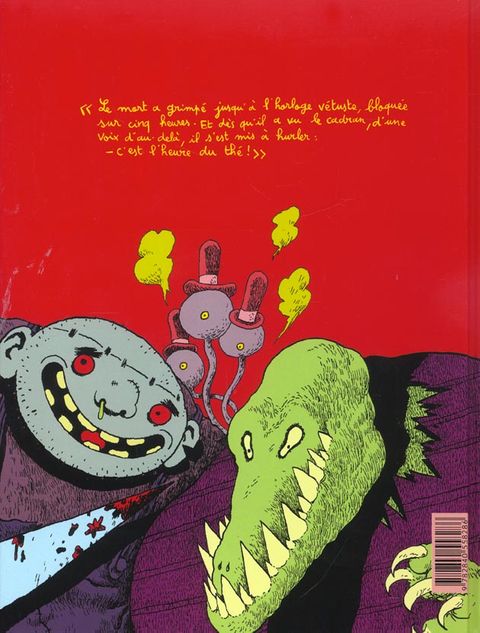Le mort a grimpé jusqu'à l'horloge vétuste, bloquée sur cinq heures. Et dès qu'il a vu le cadran, d'une voix d'au-delà, il s'est mis à hurler : c'est l'heure du thé !
