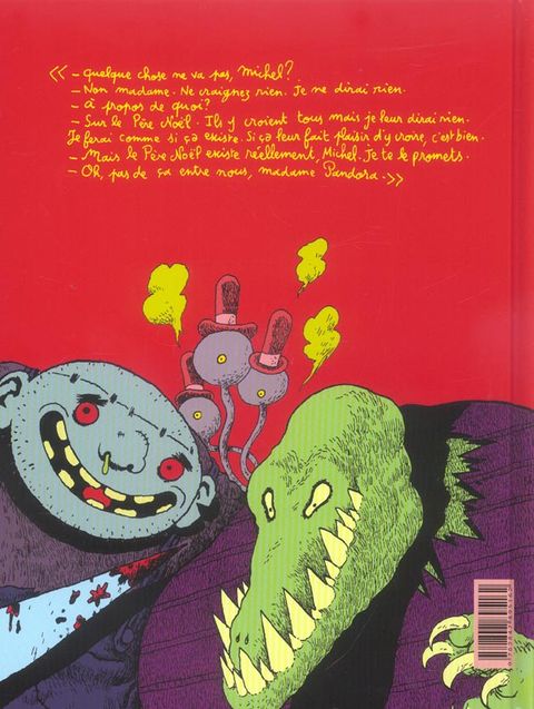 Michel ne croit pas au Père Noël. Son pépé lui a toujours dit que c'était juste une jolie histoire. De l'avis du capitaine des morts, le Père Noël existe bien. Intrigués, Petit Vampire et Michel décident d'en avoir le coeur net. Quelle n'est pas leur surprise de découvrir, à la place du gros bonhomme rouge et blanc, un géant barbu et végétal, au crâne rempli de lutins... Joann Sfar aborde une thématique inédite dans un récit jeunesse : l'hypothèse d'un monde dépourvu de Père Noël. Une réflexion intelligente et subtile sur les traditions et coutumes contemporaines.