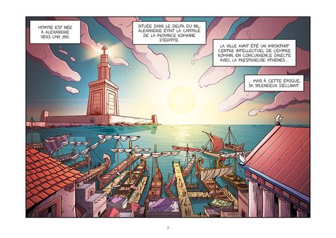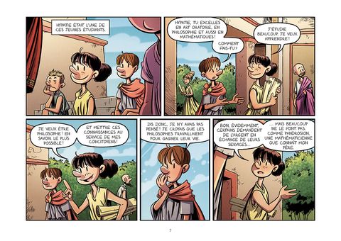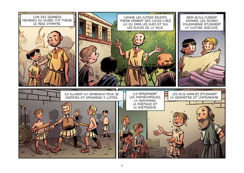 Brillante mathématicienne et passionnée de philosophie, Hypatia a contribué à réviser et mettre à jour les mathématiques et l'astronomie. Elle vivait à Alexandrie, une ville plongée dans la confusion et le conflit où le savoir et la pensée étaient menacés par le fanatisme. Désireuse de transmettre ses connaissances à ses élèves et de mettre sa sagesse au service de ses semblables, elle ne s'est jamais laissée intimider. Découvrez avec Hypatie, l'ancienne Bibliothèque d'Alexandrie, et la vie des jeunes étudiants en mathématiques et en philosophie dans la ville d'Alexandre le Grand.