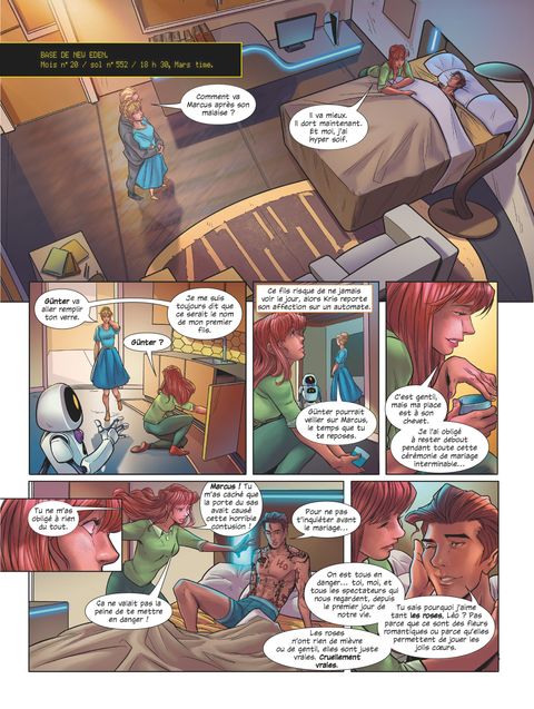 Une planète mortelle. Un équipage sacrifié. Un pacte diabolique.Une lutte pour la survie.Une course pour le pouvoir.Un jeu du chat et de la souris mortel.Ils tentent de survivre envers et contre tout.Cantonnés dans la base martienne, sous la menace imminente d’une tempête, les pionniers du programme Genesis tentent de comprendre ce qui est arrivé aux cobayes du rapport Noé afin de ne pas subir le même sort.Elle voudrait aimer sans baisser sa garde.Léonor est tiraillée entre le désir de se laisser emporter dans une histoire d’amour folle avec Marcus, et la responsabilité de continuer le bras de fer avec Serena McBee. D’autant que les autres pionniers, victimes du syndrome de Stockholm, succombent les uns après les autres au charme de leur tortionnaire…Même si les joursPour s’aimer sont comptés,Il est trop tard pour l’INSOUCIANCE.L’adaptation en bande dessinée de la saga phénomène de Victor Dixen, un thriller de science-fiction best-seller international, mariant romance spatiale et course pour la survie.