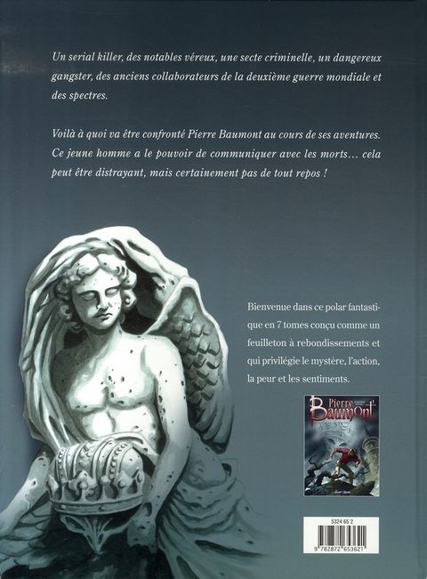 Un serial killer, des notables véreux, une secte criminelle, un dangereux gangster, des anciens collaborateurs de la deuxième guerre mondiale et des spectres. Voilà à quoi va être confronté pierre baumont au cours de ses aventures. ce jeune homme a le pouvoir de communiquer avec les morts... cela peut-être distrayant, mais certainement pas de tout repos ! bienvenue dans le polar fantastique en 7 tomes conçu comme un feuilleton à rebondissements qui privilégie le mystère, l'action, la peur et les sentiments.