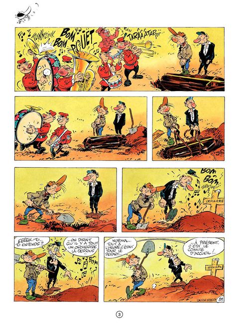 «Je suis un pauvre fossoyeur.» Pierre Tombal pourrait presque reprendre à son compte ce refrain de Brassens, si ce n'est que sa vie n'a rien de triste. Aux petits soins pour ses turbulents pensionnaires, il dialogue avec eux et fait règner un ordre bon enfant dans le cimetière dont il a la charge. Une seule chose l'agace : qu'on lui parle de crémation. Grand Prix de l'Humour Noir 2000.