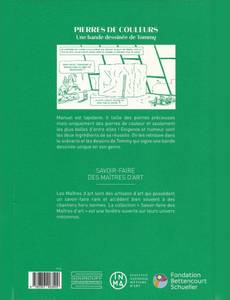 Manuel est lapidaire. C’est le héros de cette histoire et il raconte souvent que le sens de l’humour et de l’autodérision, sont le ciment de son atelier. Sans eux, on ne peut pas faire son métier sans y laisser toutes ses plumes. Pour parler de son savoir-faire, il a choisi la bande dessinée, une forme d’expression idéale pour décrire, plus que la technique, plus qu’un parcours de vie : un état d’esprit. Tommy en est l’auteur/illustrateur parfait pour mettre en cases et en bulles l’histoire de Manuel et de son art.