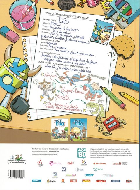 Le petit Pilo a plein d’idées : ninja, superhéros, pirate, sorcier, gladiateur, dentiste pour dinosaures, mécanicien pour soucoupes volantes... Rien que des chouettes métiers qui font rêver ! Mais pas un ne convient au directeur de son école. Un vrai rabat-joie, celui-là ! D’après lui, Pilo n’aurait « aucun sens des réalités ». La bonne blague ! Les grandes personnes sont vraiment des gens bizarres…