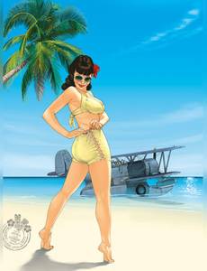 Véritables icônes glamour, les pin-up sont indissociables de l'histoire de l'aviation, synonymes depuis toujours d'aventures et de passion. Romain Hugault, en véritable amateur du genre est un virtuose de cet art. Il se fait une joie, entre deux planches de BD, de réaliser de nouvelles illustrations de ces demoiselles toujours pimpantes, parfois coquines mais jamais vulgaires. Peintes sur un fuselage, sur un blouson d'aviateur ou épinglées dans un cockpit, elles donnaient au pilote un peu de courage lorsqu'il était plongé au coeur d'une mission périlleuse.