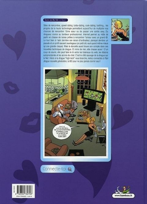 Sites de rencontres, speed dating, turbo dating, cook dating... Nous voilà sauvés ! Les progrès de la haute technologie permettent aujourd'hui de multiplier nos chances de rencontrer l'âme soeur. Du dragouilleur de base au tombeur professionnel, Internet permet au mâle de partir en chasse de nanas prêtes à rencontrer l'amour avec un grand @, à l'abri derrière son écran d'ordinateur. Mais la donzelle aussi trouve son compte dans ces nouvelles techniques de drague. D'un coup de souris, elle peut faire le tri entre les blaireaux du web, les étalons autoproclamés et les accros du chat. La drague en 3 minutes chrono ou par écrans interposés, ça peut marcher ! La preuve dans ce nouvel album de la collection Plan drague, signé Wozniak, Cazenove et du très médiatique Lewis Wingrove.