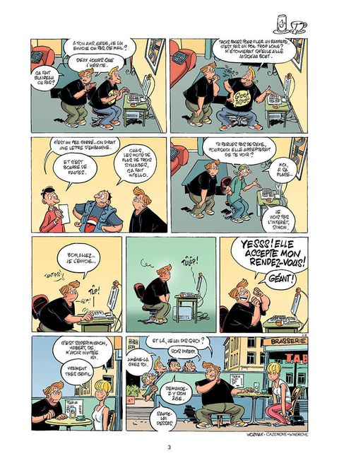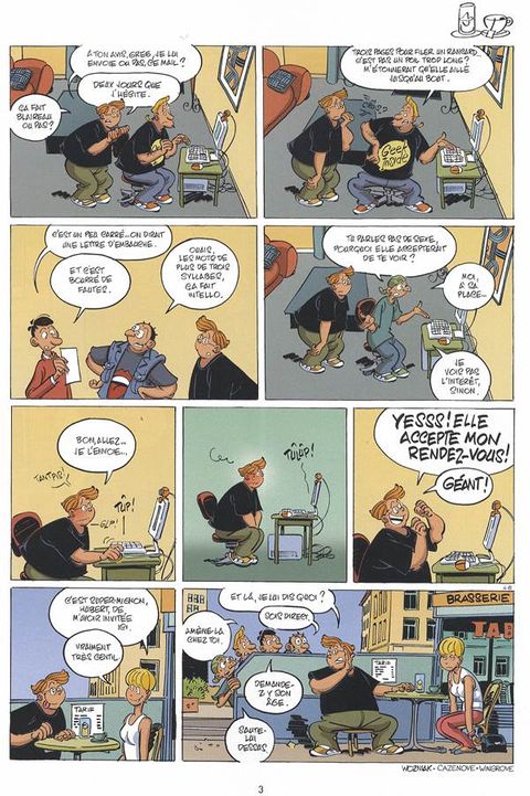 Sites de rencontres, speed dating, turbo dating, cook dating, toothing. Nous voilà sauvés ! Les progrès de la haute technologie permettent aujourd'hui de multiplier nos chances de rencontrer l'âme soeur. Du dragouilleur de base au tombeur professionnel, Internet permet au mâle de partir en chasse de nanas prêtes à rencontrer l'amour avec un grand @. Le tout bien à l'abri derrière son écran d'ordinateur, planqué derrière un pseudo et un profil souvent avantageux (un petit clic vaut quand même mieux qu'une grande claque). Alors si la drague en trois minutes vous attire, restez connectés avec cette BD pour ne plus jamais dormir seul !