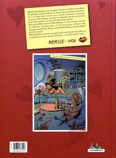Quand vous draguez, vous êtes plutôt du genre prédateur ascendant chaud lapin ou plutôt adepte du " femme qui rit, femme à moitié au lit " ? a moins que vous ne soyez comme gwénolé, le farouche puceau de plan drague, du genre à bafouiller devant une femme pour savoir quelle est sa série télé allemande préférée. Plus qu'une bd d'humour, plan drague est votre nouveau manuel de séduction. certains plans ont fait leur preuve, d'autres sont historiquement foireux. et tous sont dans plan drague qu'à être essayés. mais attention, souvez-vous qu'à trop vouloir rouler des pelles, on se prend souvent des râteaux ! et sinon... vous faites quoi ce soir ?