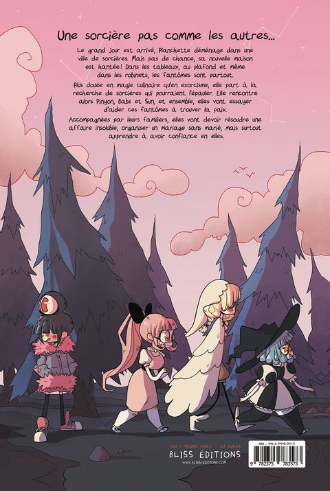 La nouvelle BD de Haley Newsome, alias Lavendertowne, l'autrice aux 2 millions d'abonnés sur Youtube ! Le grand jour est arrivé, Planchette déménage dans une ville de sorcières. Mais pas de chance, sa nouvelle maison est hantéeâ! Dans les tableaux, au plafond et même dans les robinets, les fantômes sont partout. Plus douée en magie culinaire qu'en exorcisme, elle part à la recherche de sorcières qui pourraient l'épauler. Elle rencontre alors Pinyon, Babs et Sun, et ensemble, elles vont essayer d'aider ces fantômes à trouver la paix. Accompagnées par leurs familiers, elles vont devoir résoudre une affaire insoluble, organiser un mariage sans marié, mais surtout apprendre à avoir confiance en elles.
