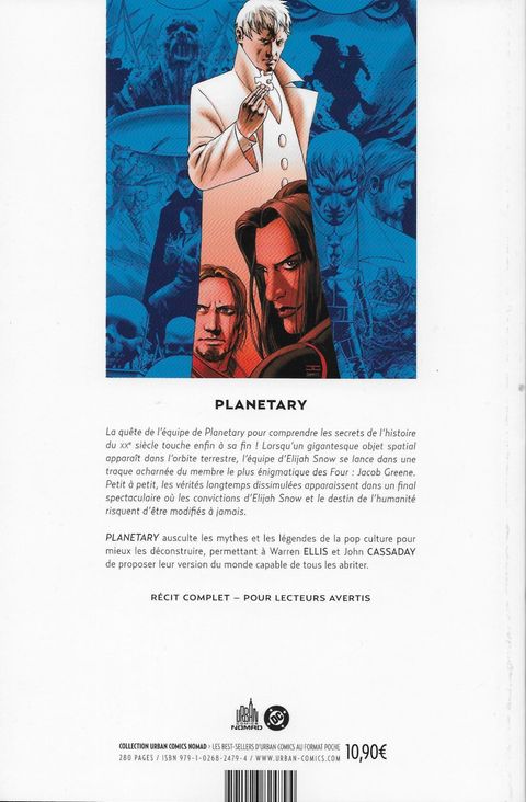 a quête de l’équipe de Planetary pour comprendre les secrets de l'histoire du XXe siècle touche enfin à sa fin ! Lorsqu’un gigantesque objet spatial apparaît dans l’orbite terrestre, l’équipe d’Elijah Snow se lance dans une traque acharnée du membre le plus énigmatique des Four : Jacob Greene. Petit à petit, les vérités longtemps dissimulées apparaissent dans un final spectaculaire où les convictions d’Elijah Snow et le destin de l'humanité risquent d’être modifiées à jamais…