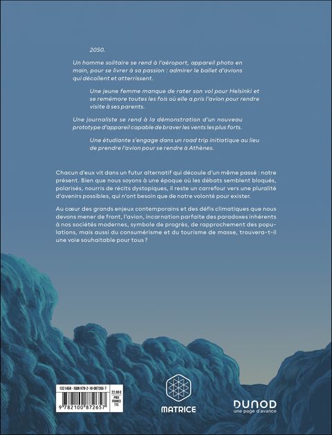 Aucun secteur n’est plus clivant que celui de l’aviation. Alors qu’il est de plus en plus urgent d’agir pour le climat, il n’y a jamais eu autant d’avions dans le ciel, et ce mode de transport, qui a rapproché l’humanité et permis de rendre le monde globalisé, n’a jamais été aussi inégalitaire qu’aujourd’hui. Si certains pensent que le progrès technologique permettra de résoudre la crise climatique, d’autres estiment que l’avion n’a pas sa place dans un avenir durable.Comment définir les futurs souhaitables pour l'aviation ? Quatre auteurs de BD, Héloïse Chochois, Maureen Guérin, Élie Huault et Pierre Jeanneau, se sont penché sur la question. Avec l’aide de Matrice, centre d'innovation technologique et sociale, ils se sont nourris des réflexions de chercheurs, de spécialistes, d’industriels et même d’usagers pour concevoir des histoires illustrant quatre scénarios prospectifs à horizon 2050.Nouveaux carburants, nouvelles manières de voyager, nouvelles façons de réguler le trafic ou de prioriser les vols… en utilisant la fiction pour illustrer ces hypothèses, ils offrent un point de vue artistique et apportent des éléments de réponse pour les générations présentes et à venir.