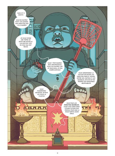 Pour quelques plastok de plus !Après que le monde des hommes ait disparu, les insectes ont pris le pouvoir et érigé une nouvelle civilisation ! Dans ce monde, Bug le puceron est désormais l’ennemi public numéro un, depuis l’assassinat de la grande prêtresse Anasta ! Chassé de la cité d’Hexapoda, il s’est lancé dans une cavale effrénée. Heureusement, il peut compter sur l’aide de Sagawa, une mante religieuse qui l’accueille volontiers sur le navire pirate de son père. Mais ce sera à une condition : que ce petit puceron dont la tête est mise à prix guide l’équipage vers le continent rêvé de plastok laissé par les hommes. Clamant toujours son innocence, Bug n’a pas vraiment le choix. S’il veut atteindre cet eldorado, il doit d’abord récupérer une carte qui se trouve dans l’antre de la redoutable sorcière à huit pattes… Les ennuis ne font que commencer. Avant de s’éteindre, la grande prêtresse a bien laissé des instructions à Bug, mais s’aventurer dans le marais puant ne présage rien de bon. Pour découvrir la vérité Bug devra affronter des créatures monstrueuses, les fourmis et autres nuisibles. Sans oublier que l’empire a des antennes partout et que les mauvaises surprises risquent de leur coûter des vies. Tandis que Bug tâche de récupérer la carte, une question reste en suspens, à qui profite le crime perpétré contre la grande prêtresse ?Maud Michel et Nicolas Signarbieux nous offrent encore une fois des dialogues savoureux dans ce second tome aux allures plus sombre, proche du western horrifique. Une trilogie avec un univers graphique bien à part, aussi visuelle que sensorielle qui nous plonge dans le monde de l’infiniment petit pour un grand moment de lecture.