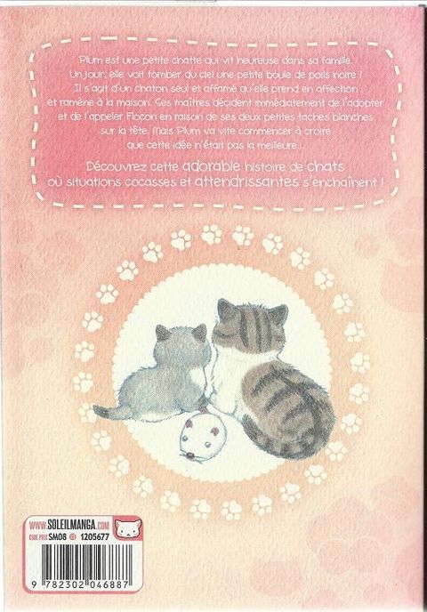 Plum est une petite chatte qui vit heureuse dans sa famille. Un jour qu'elle se baladait dans le jardin, elle découvre une petite boule de poils noire ! Il s'agit d'un chaton seul et affamé qu'elle prend en affection et décide de ramener à la maison. Ses maîtres décident immédiatement de l'adopter et de l'appeler Flocon en raison de ses deux petites taches blanches sur la tête. Mais Plum a vite l'impression que ramener Flocon n'était pas la meilleure idée de sa vie...